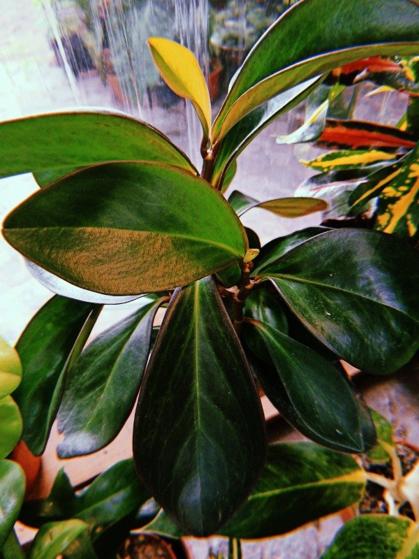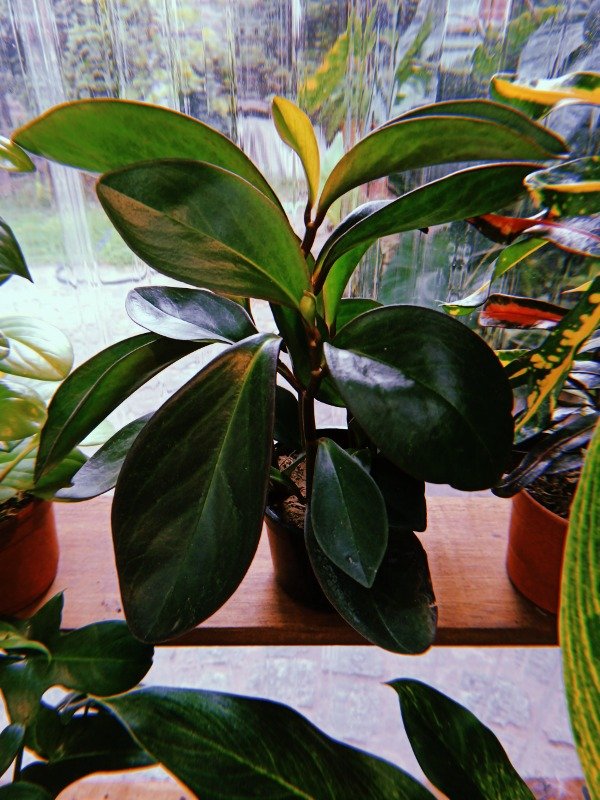 Es una variedad de hojas con manchas crema de Peperomia obtusifolia, nativa del sur de Estados Unidos, México, Centroamérica, y norte y centro de Sudamérica.
